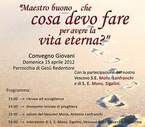 Si svolgerà dal 4 al 6 giugno il tradizionale appuntamento della tre giorni pastorale, che quest’anno avrà per tema ‘L’Uomo e la Fede ne mondo contemporaneo’ – Quali le priorità spirituali e pastorali di una comunità cristiana per educare alla fede? Ad un’analisi dell’attuale contesto ecclesiale sulla condizione della fede delle nostre comunità cristiane (tenendo conto delle indicazioni di Benedetto XVI), individuare dei percorsi … Continua a leggere L’Uomo e la Fede nel mondo contemporaneo