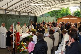 E’ stata realizzata a fianco delle rovine dell’antica chiesa di San Bartolomeo, crollata in seguito al terremoto, la nuova chiesa temporanea di Villafranca di Medolla che inaugurerà entro la metà di novembre. La struttura, un fabbricato leggero di pannelli di vetroresina che potrà ospitare fino a cento fedeli, rappresenta la prima chiesa realizzata nella diocesi di Modena-Nonantola dopo il sisma di maggio. Una comunità, quella di … Continua a leggere A Villafranca di Medolla la prima chiesa temporanea dopo il terremoto