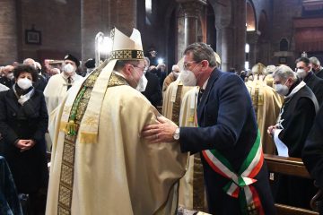 Così l’Arcivescovo Erio Castellucci si è rivolto ai fedeli prima di impartire sulla città di Modena e sull’Arcidiocesi di Modena-Nonantola la benedizione con la reliquia del braccio del santo patrono, Geminiano. La benedizione ha preceduto la solenne concelebrazione pontificale, presieduta dall’Arcivescovo Giacomo Morandi, Vescovo eletto di Reggio Emilia-Guastalla, a cui monsignor Castellucci si è rivolto con un sentito ringraziamento, ricordandone le origini: «Don Giacomo, nato a pochi passi da qui, cresciuto nella nostra arcidiocesi, divenuto poi arciprete di questa Cattedrale e vicario generale, negli ultimi sei anni era stato “prestato” alla Chiesa universale, svolgendo a Roma il delicatissimo compito di segretario della Congregazione per la dottrina della fede. Ora torna tra di noi, nella chiesa sorella di Reggio Emilia, la seconda diocesi della regione per numero di fedeli, dove lo attende un ministero intenso e dove metterà a disposizione le sue grandi competenze e la sua ricca umanità. Avremo modo di collaborare fraternamente; lo accompagniamo con l’amicizia e con la preghiera».