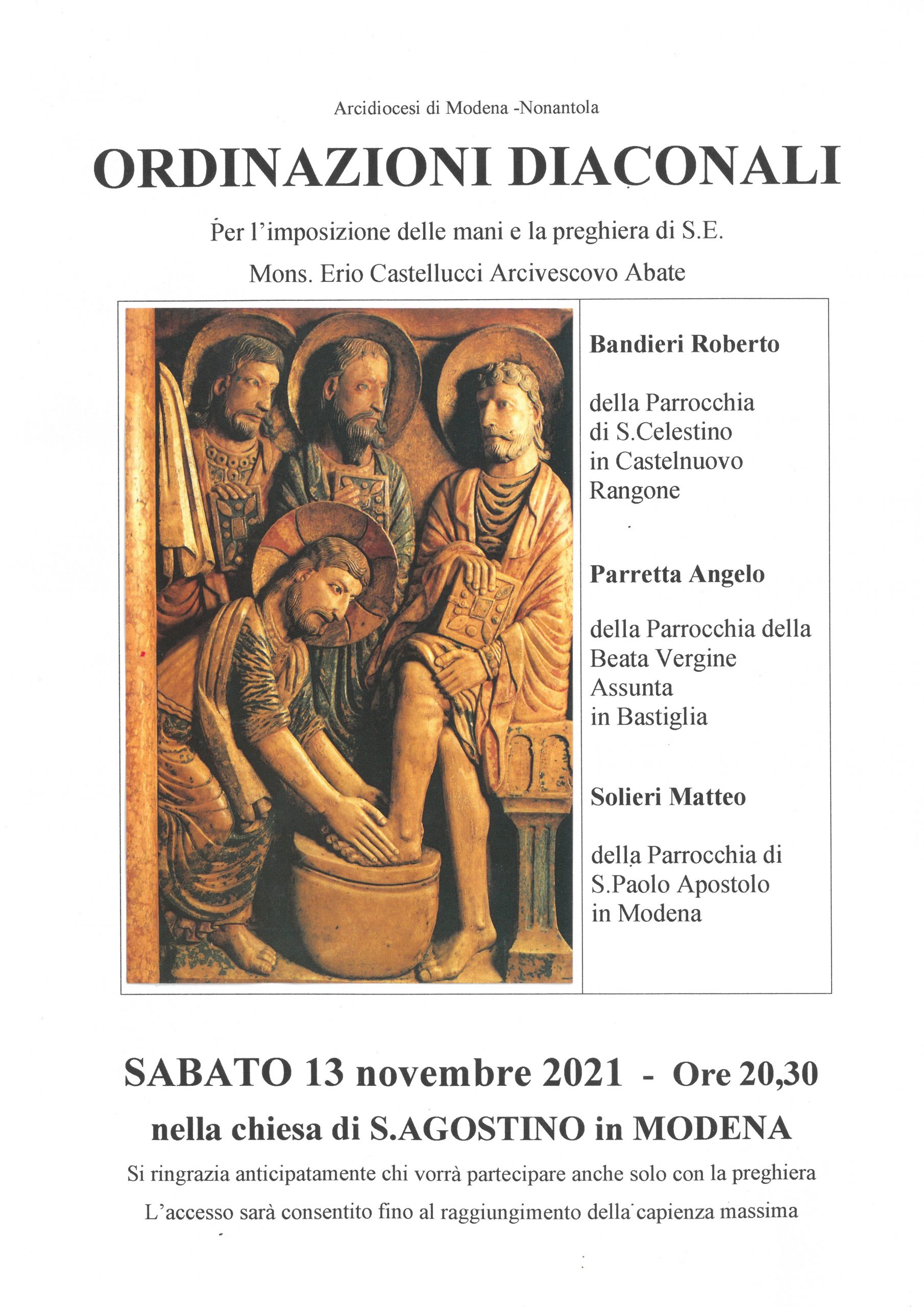 c/o chiesa di Sant’Agostino: ordinazione diaconi permanenti: Bandieri Roberto, Parretta Angelo, Solieri Matteo