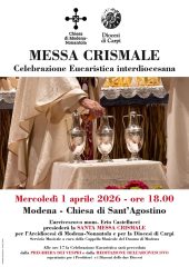Agenda del Vescovo 27 Marzo 2026 Chiesa di Sant’Agostino: Messa Crismale mercoledì 1 Aprile Descrizione: Inizio: 01/04/2026 18:00 Fine: 01/04/2026 19:30 Categorie: Agenda del Vescovo Indirizzo: Largo Porta Sant’Agostino, 41121 Modena, Emilia-Romagna Italia Città: Modena Regione: Emilia-Romagna Paese: Italia Chiesa di Sant’Agostino: Messa CrismaleLargo Porta Sant’Agostino, 41121 Modena, Emilia-Romagna Italia