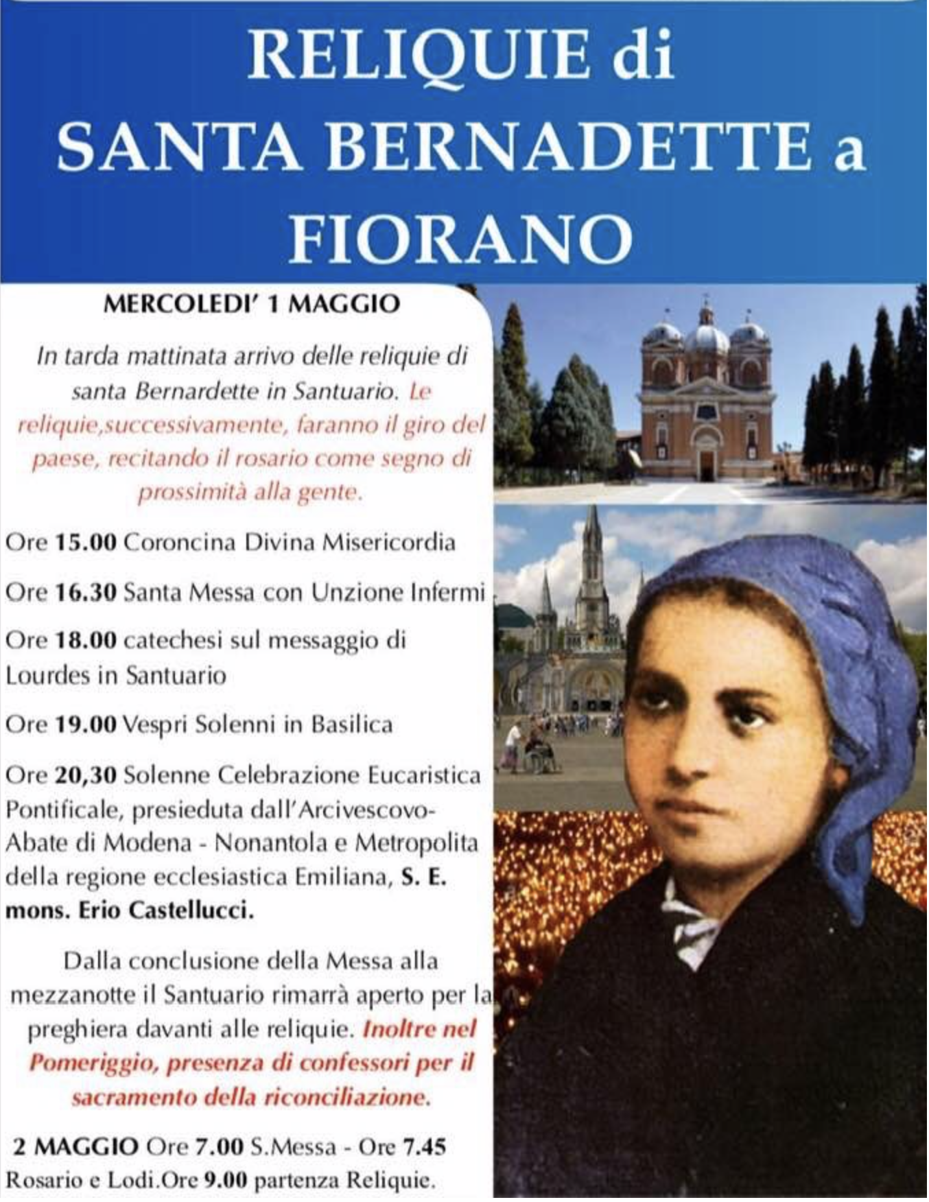 al Santuario di Fiorano Concelebrazione reliquie di santa Bernadette e seguire preghiera mariana