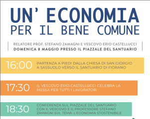 Agenda del Vescovo 3 Maggio 2022 Conferenza sul piazzale del Santuario insieme al Prof. Zamagni “Un’ Economia per il bene comune” domenica 8 Maggio Descrizione: Inizio: 08/05/2022 18:30 Fine: 08/05/2022 20:00 Categorie: Agenda del Vescovo Indirizzo: 41042 Fiorano Modenese, Emilia-Romagna Italia Città: Fiorano Modenese Regione: Emilia-Romagna Paese: Italia Conferenza sul piazzale del Santuario insieme al Prof. Zamagni "Un' Economia per il bene comune"41042 Fiorano Modenese, Emilia-Romagna Italia