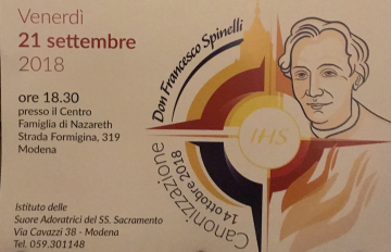 In vista della Canonizzazione del Beato Francesco Spinelli le Suore Adoratrici del SS. Sacramento invitano i Sacerdoti e tutta la popolazione all’incontro: