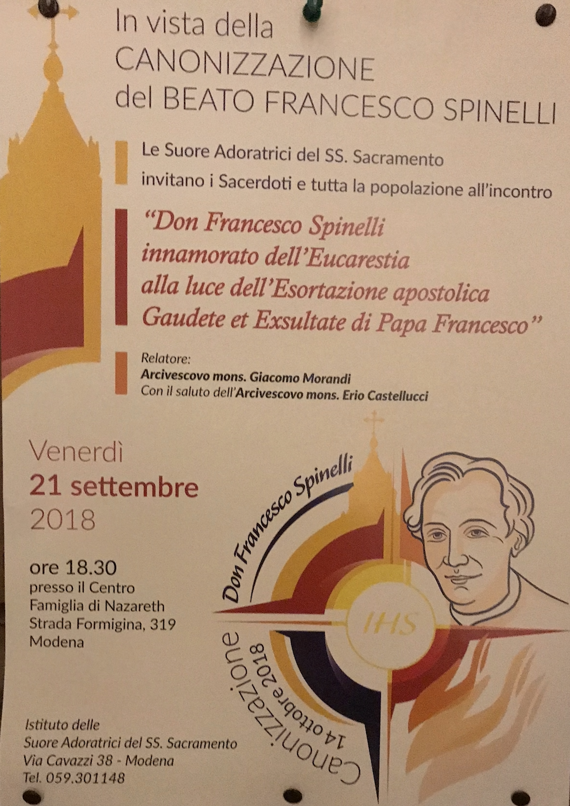 In vista della Canonizzazione del Beato Francesco Spinelli le Suore Adoratrici del SS. Sacramento invitano i Sacerdoti e tutta la popolazione all’incontro: