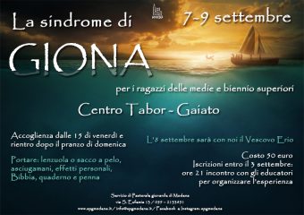 Ritiro per i ragazzi delle medie e del biennio delle superiori dalle ore 15 di venerdì 7 al pranzo di domenica 9 settembre 2018 presso il Centro Tabor di Gaiato.