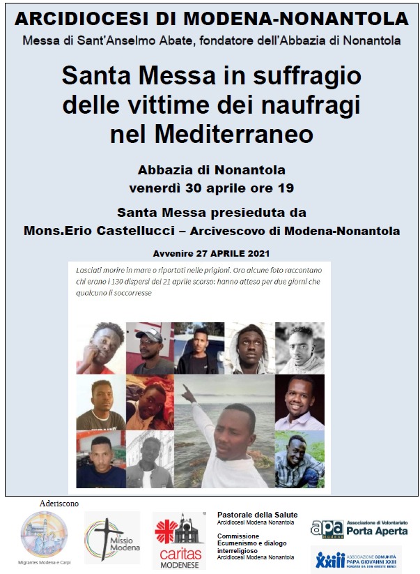 S. Messa per Sant’Anselmo Abate in Abbazia a Nonantola e in suffragio delle vittime dei naufragi nel Mediterraneo