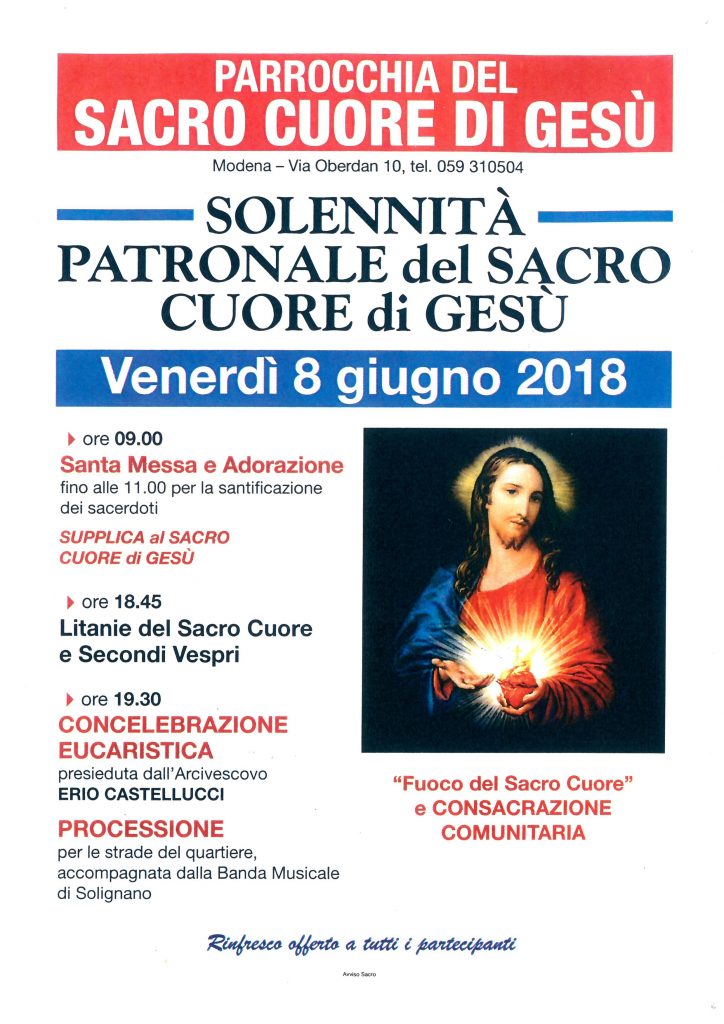 Parrocchia del Sacro Cuore di Gesù, Modena: concelebrazione eucaristica presieduta dall’Arcivescovo e a seguire processione per le strade del quartiere, accompagnata dalla Banda musicale di Solignano