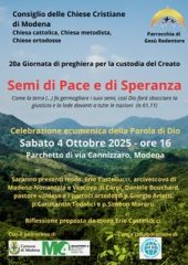 Agenda del Vescovo 28 Settembre 2025 Parchetto di via Cannizzaro: Giornata del Creato sabato 4 Ottobre Descrizione: Inizio: 04/10/2025 16:00 Fine: 04/10/2025 16:30 Categorie: Agenda del Vescovo Indirizzo: Via Stanislao Cannizzaro, 41128 Modena, Emilia-Romagna Italia Città: Modena Regione: Emilia-Romagna Paese: Italia Parchetto di via Cannizzaro: Giornata del CreatoVia Stanislao Cannizzaro, 41128 Modena, Emilia-Romagna Italia Tempo del Creato Ecumenico 4.10.2025