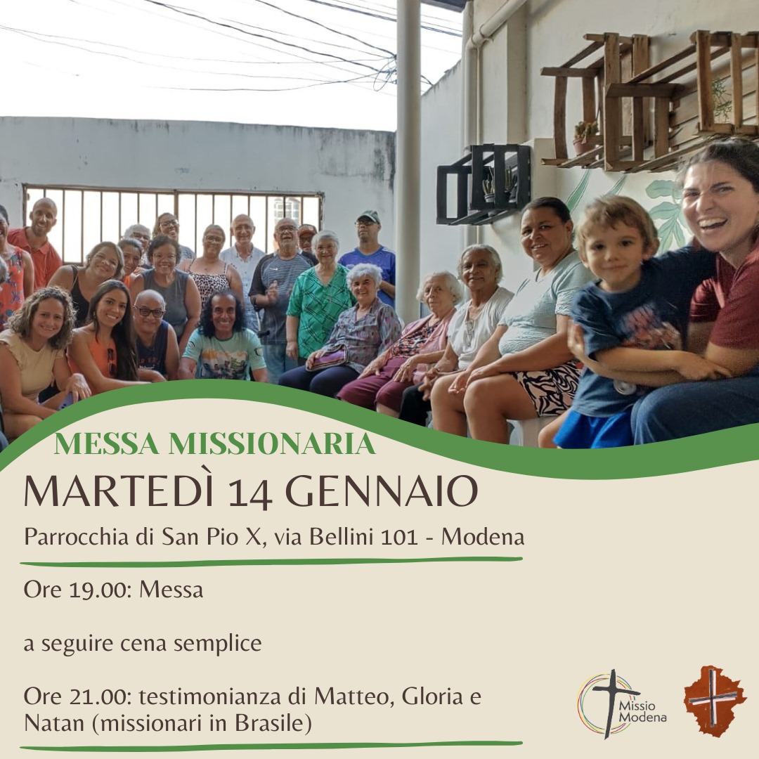 Eventi in diocesi 7 Gennaio 2025 Parrocchia San Pio X: Messa missionaria mensile martedì 14 Gennaio Descrizione: Inizio: 14/01/2025 19:00 Fine: 14/01/2025 22:00 Categorie: Eventi in diocesi Indirizzo: Via Vincenzo Bellini 101, 41121 Modena, Emilia-Romagna Italia Città: Modena Regione: Emilia-Romagna Paese: Italia Parrocchia San Pio X: Messa missionaria mensileVia Vincenzo Bellini 101, 41121 Modena, Emilia-Romagna Italia