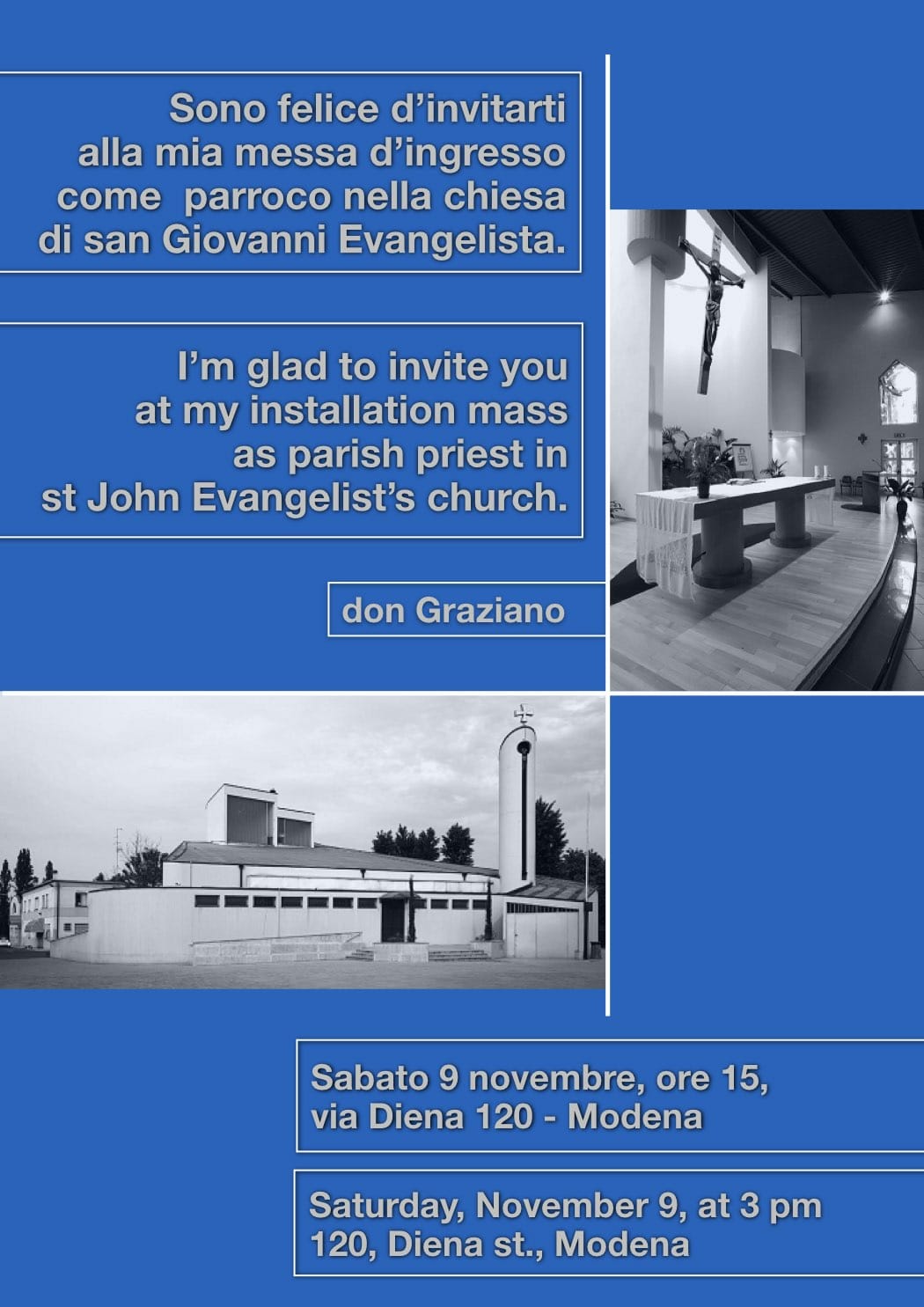 Celebrazione della S. Messa per l’ingresso di don Graziano Gavioli, neo parroco di S. Giovanni Apostolo ed Evangelista.